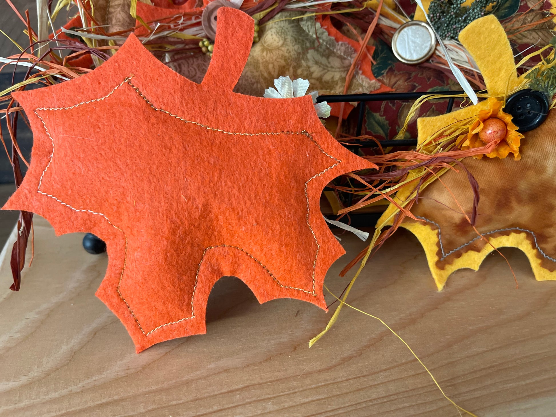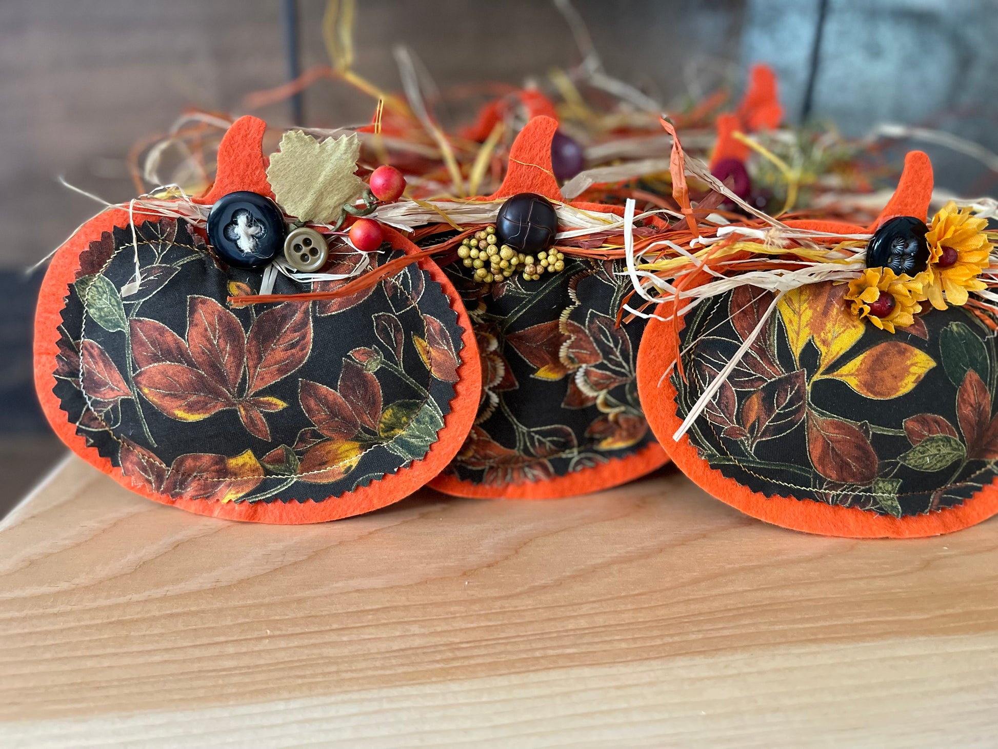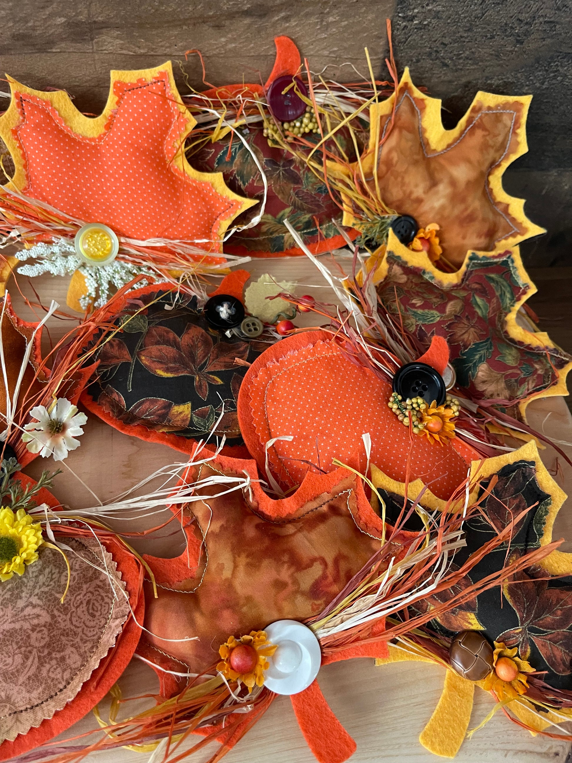 Handcrafted: stitched, decorated, and fiber filled “puff” felt decor in leaf or pumpkin shapes to add some rustic charm to your Fall decor!