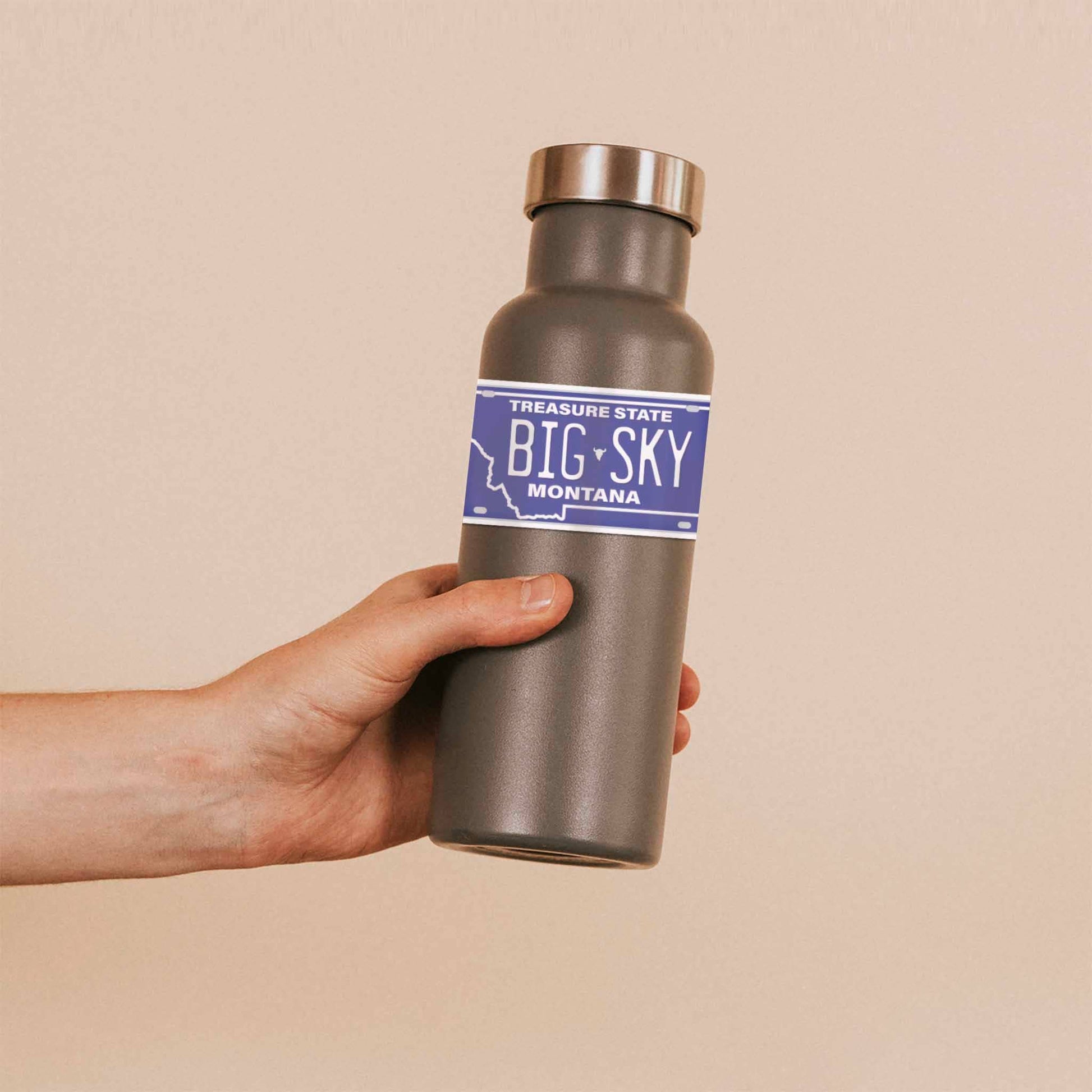 Blue Montana “Big Sky” Treasure State license plate sticker resembles the real MT license plate, 4” wide.