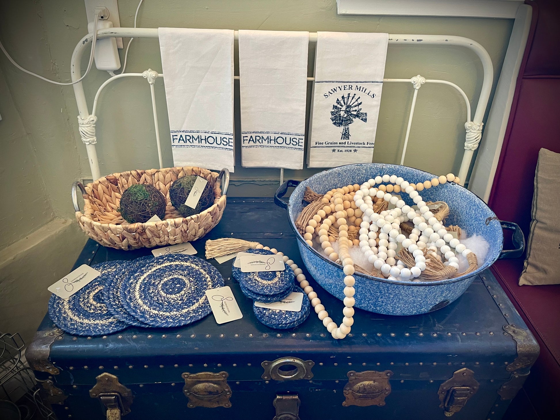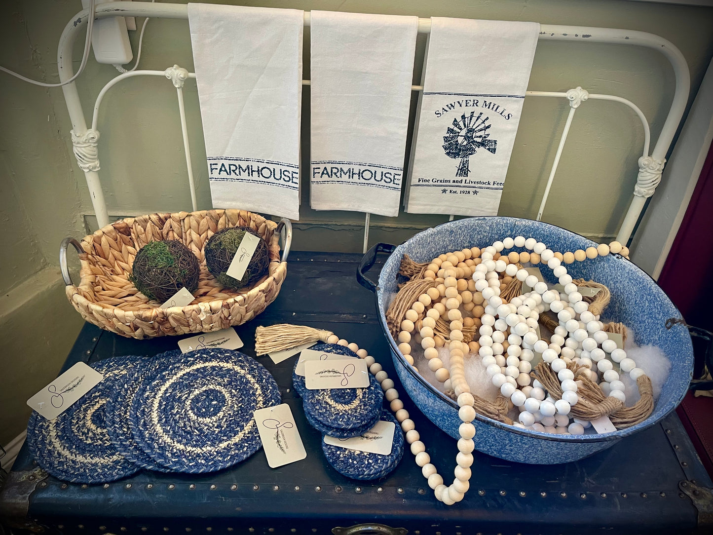 Pair with coordinating tabletop and kitchen pieces from the “Great Falls” Collection for placemats, table runners, chair pads, and trivets in a matching modern country style!