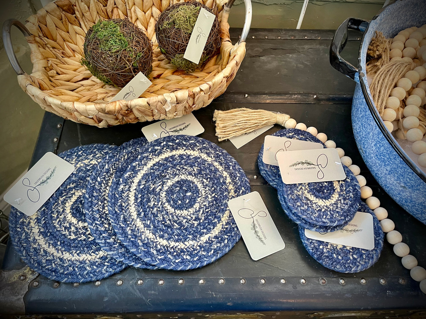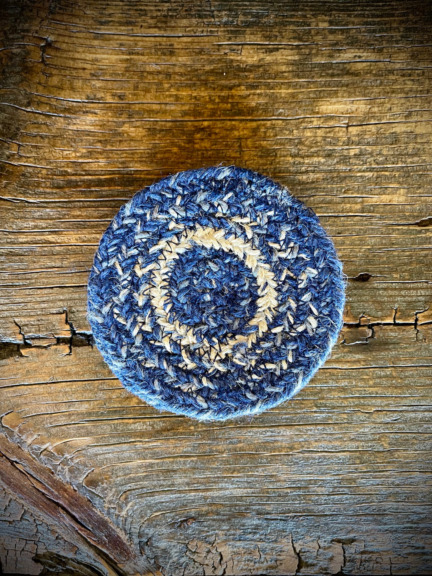 No one likes a coffee ring on their table! Protect your furniture with texture-rich, farmhouse style with braided jute in bright shades of indigo, powder blue and creme.