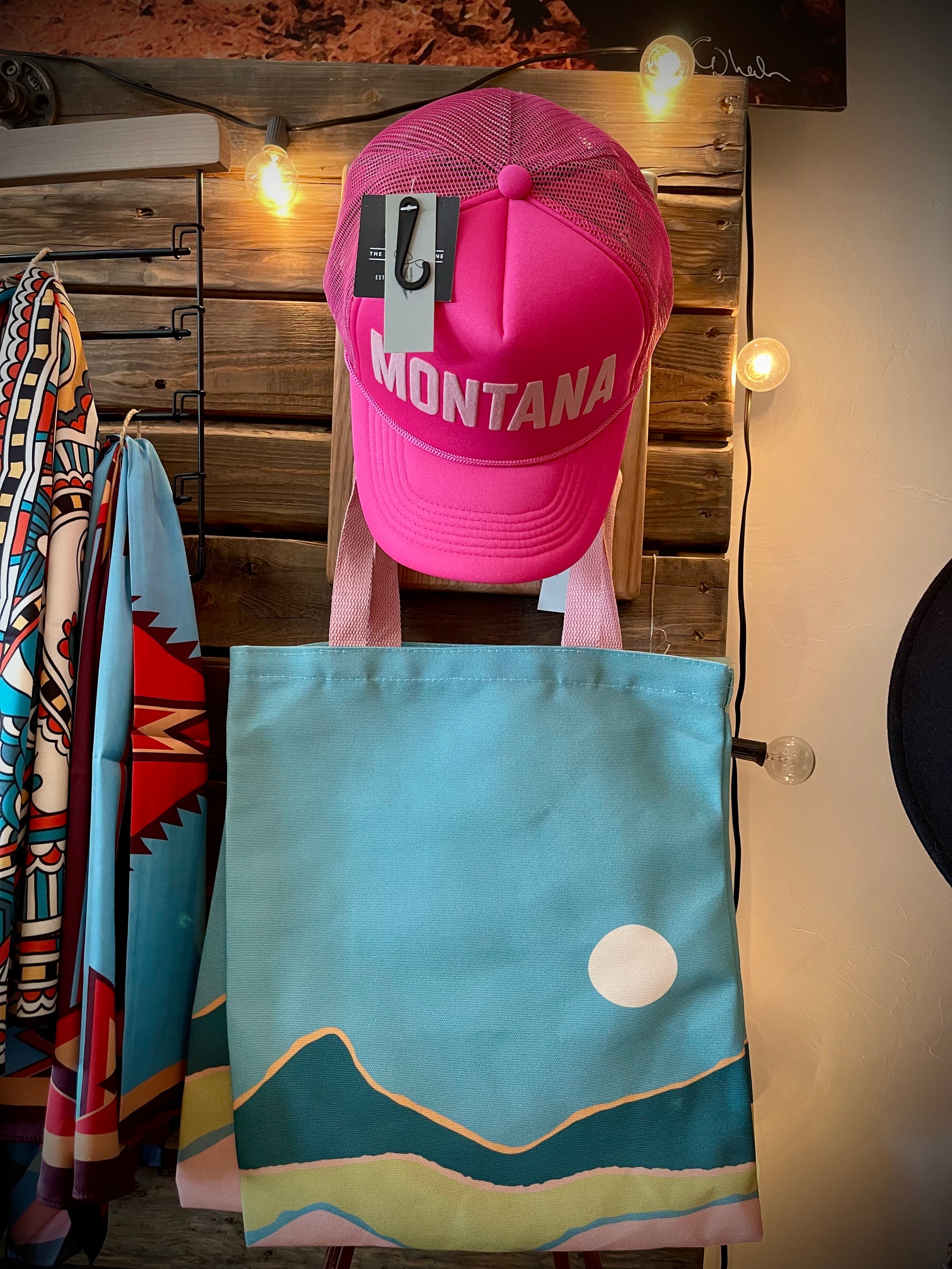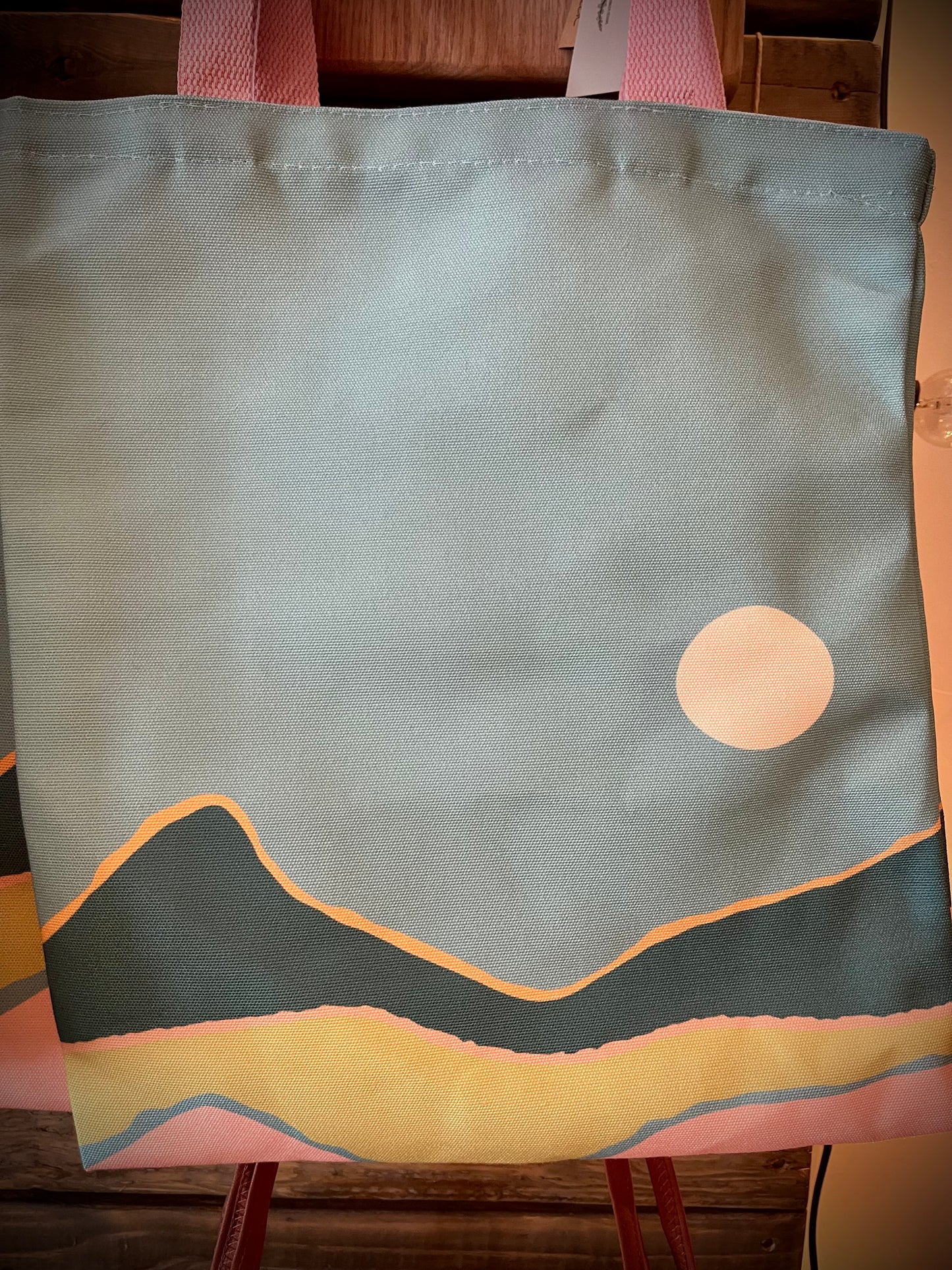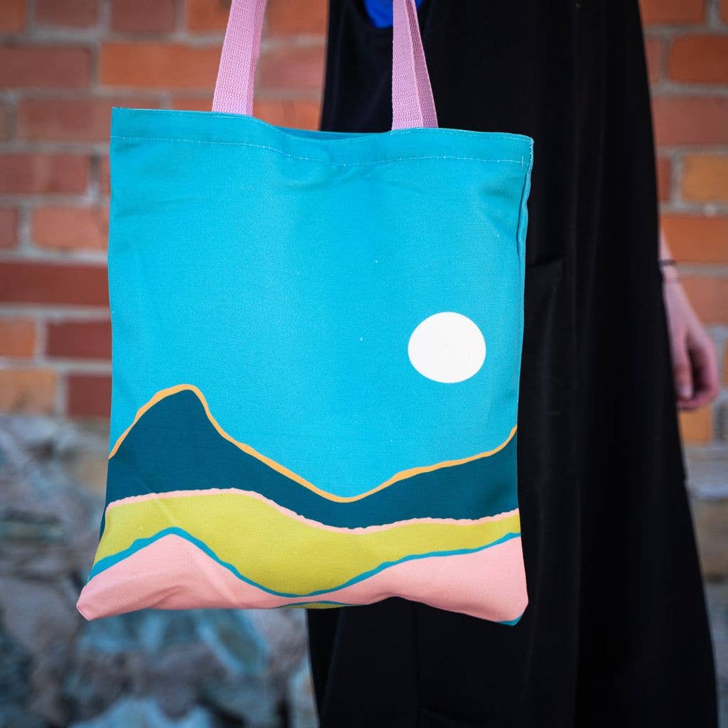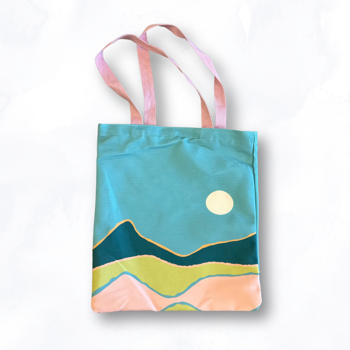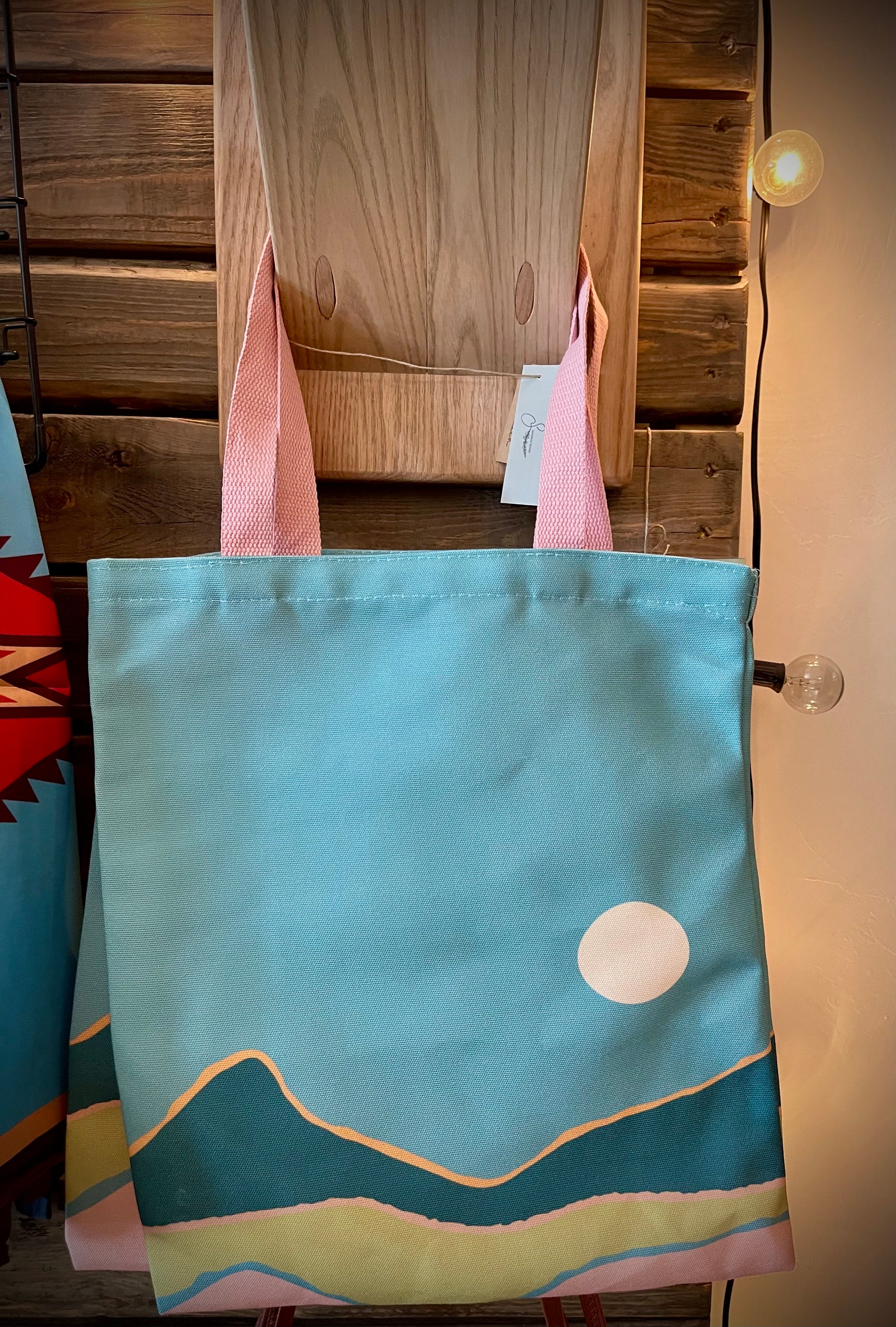 “Mountain Sun” Canvas Tote - Teal/Pink