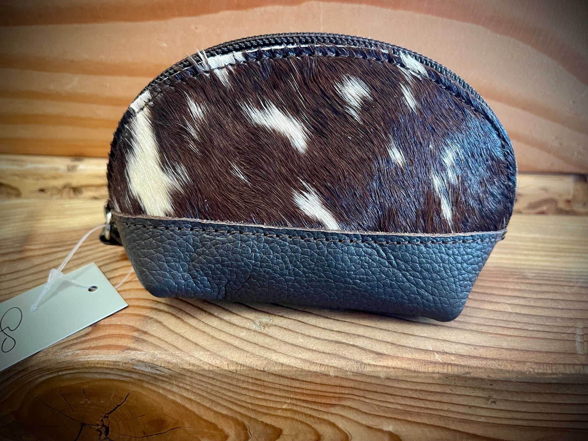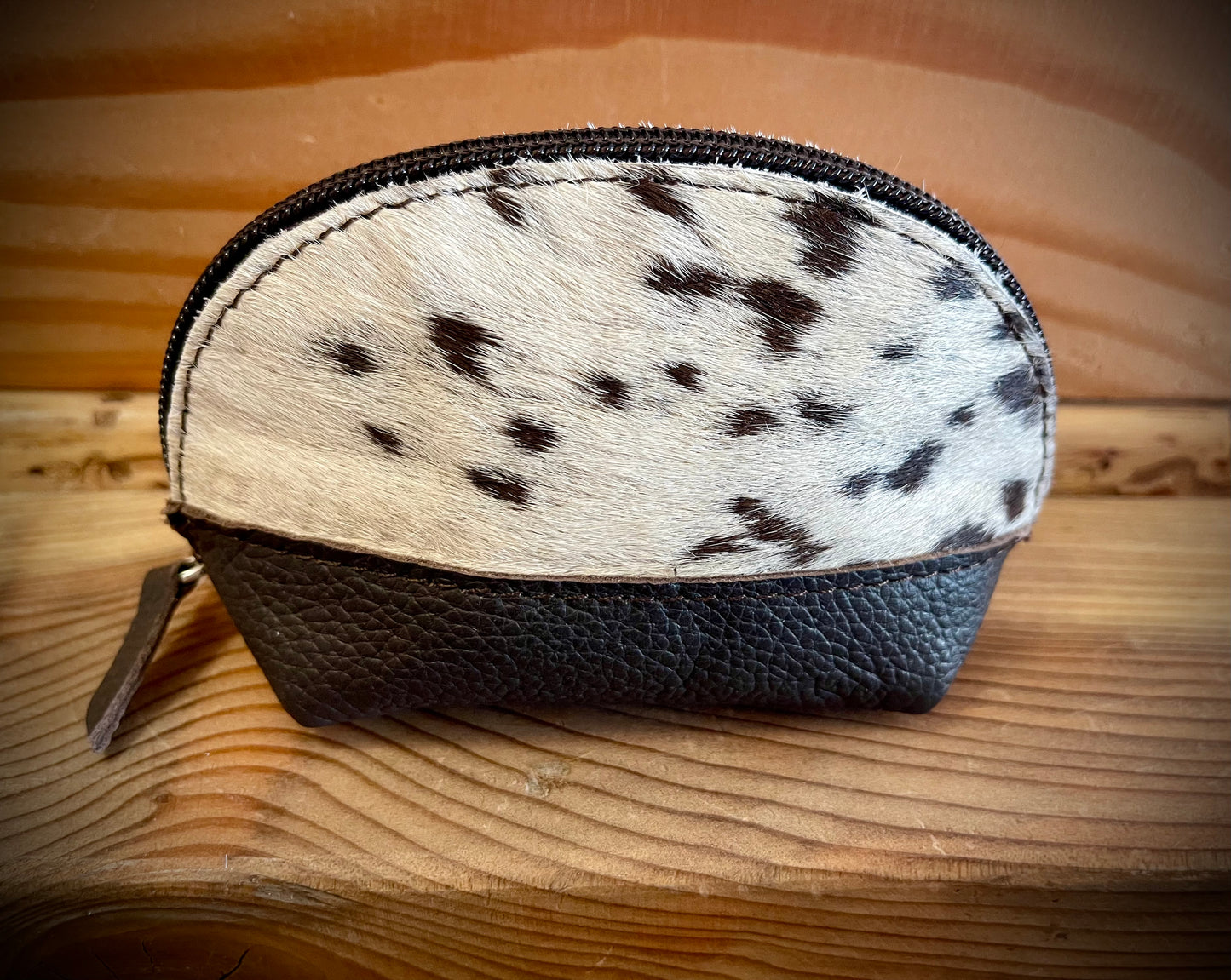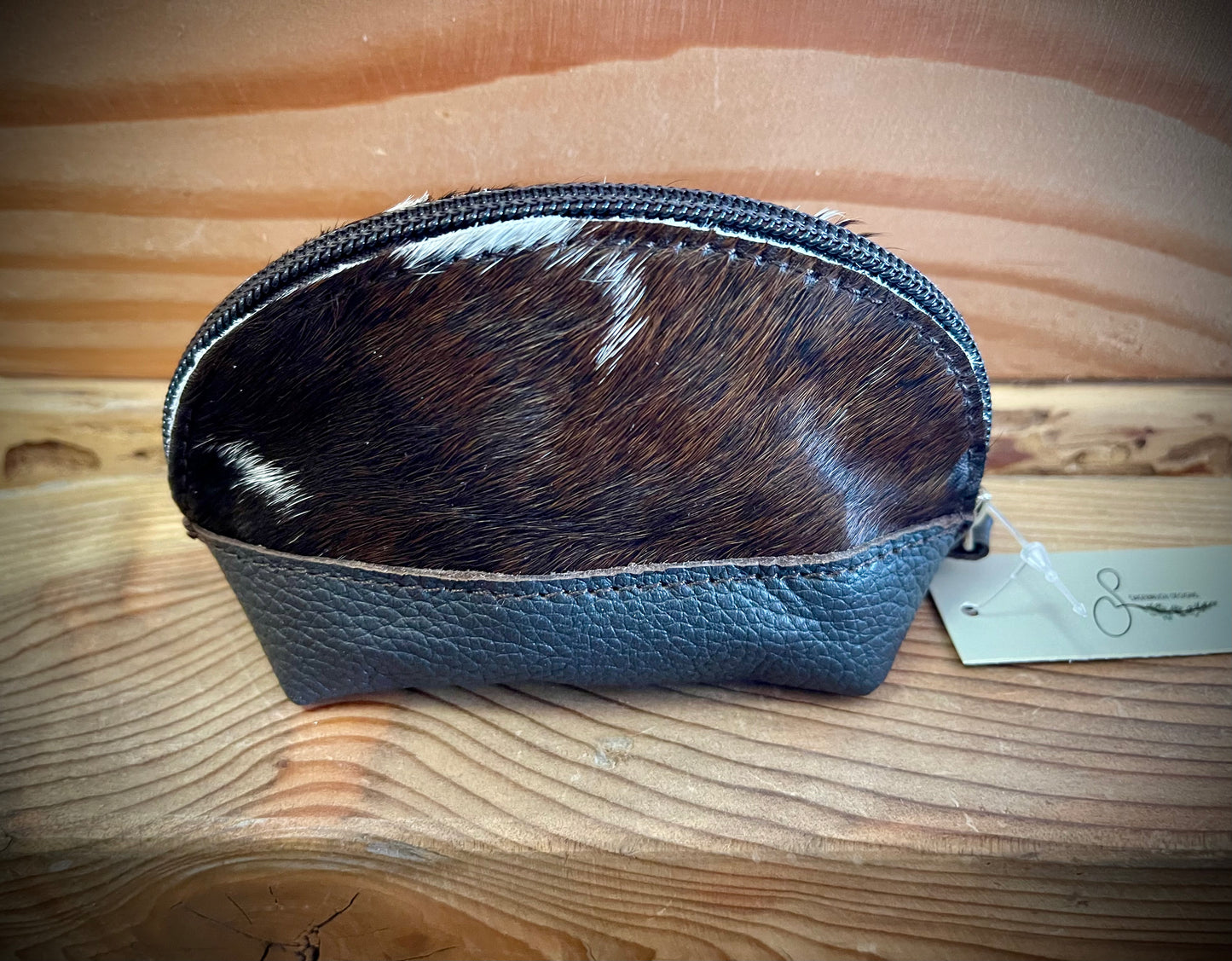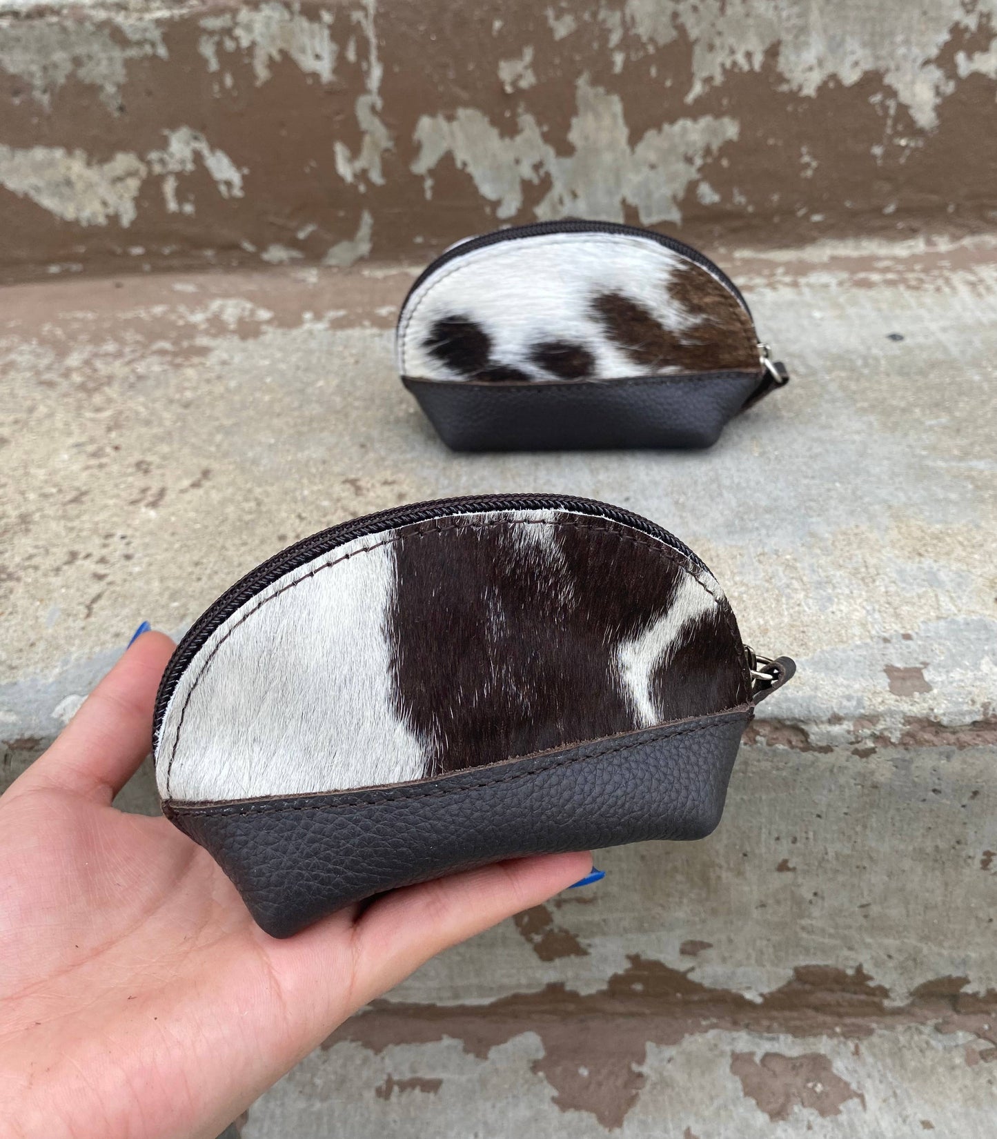 Leather/Cowhide coin pouch! Full hair on hide front and back with leather bottom.