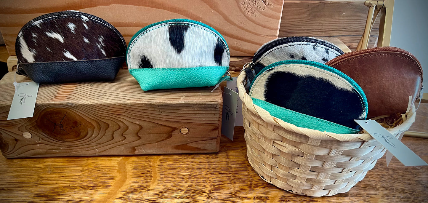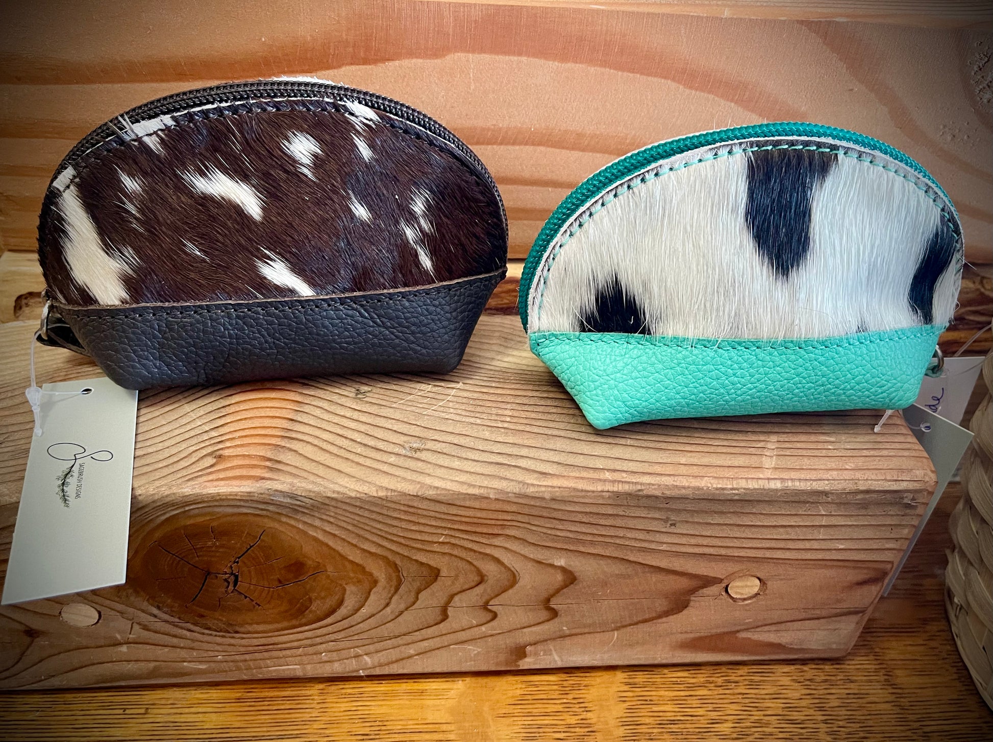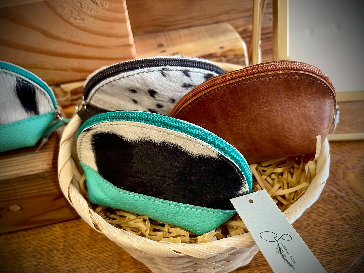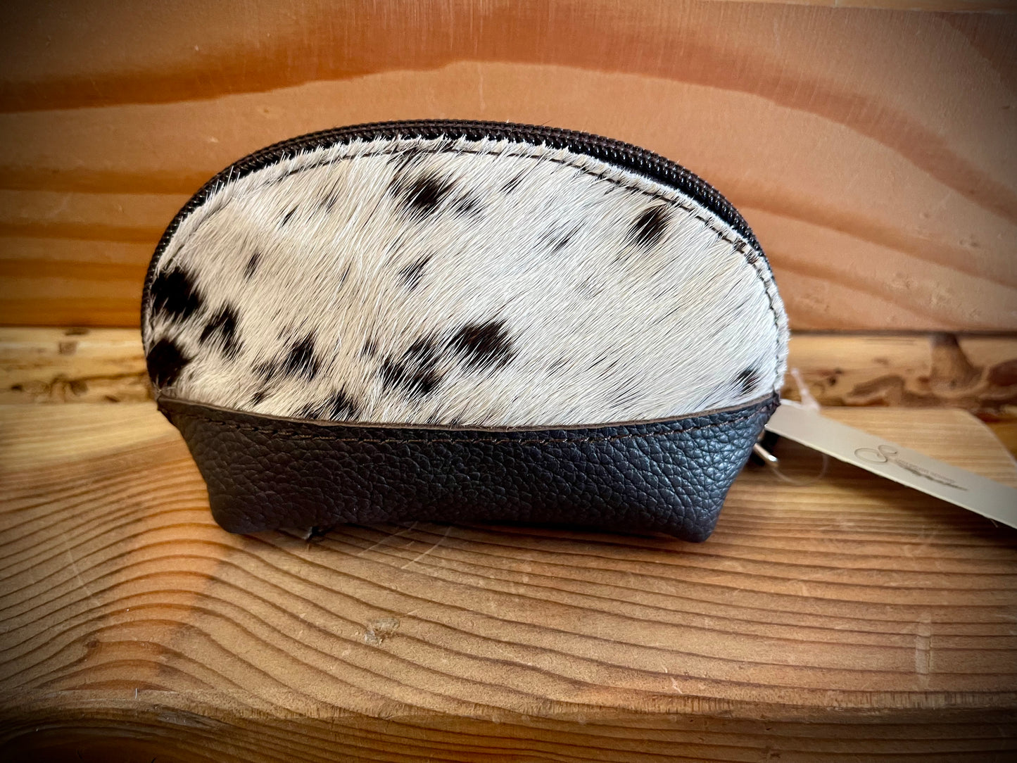 Leather/Cowhide coin pouch! Full hair on hide front and back with leather bottom.