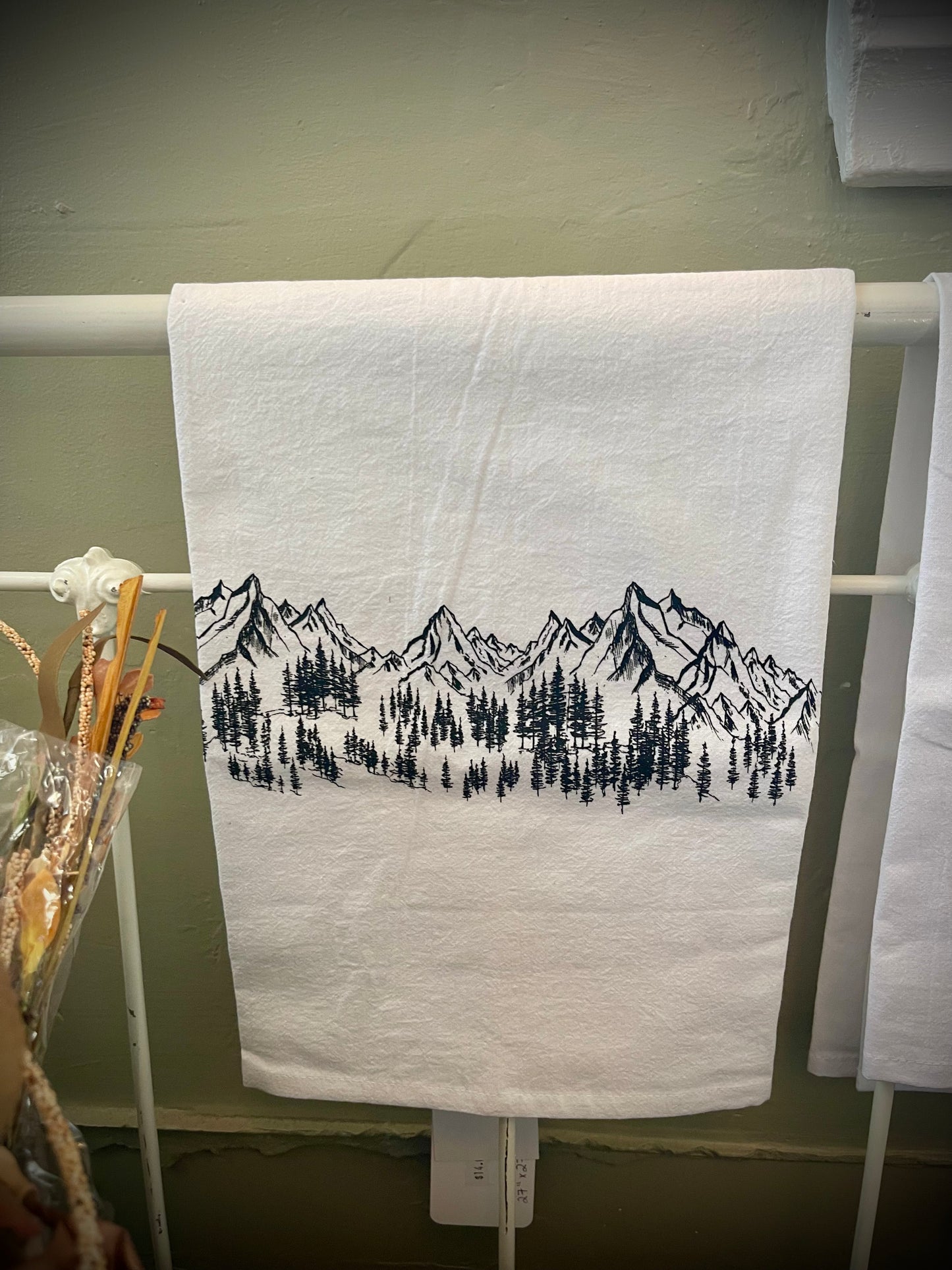 “Mountain Sketch” Flour Sack Kitchen Dish Towel